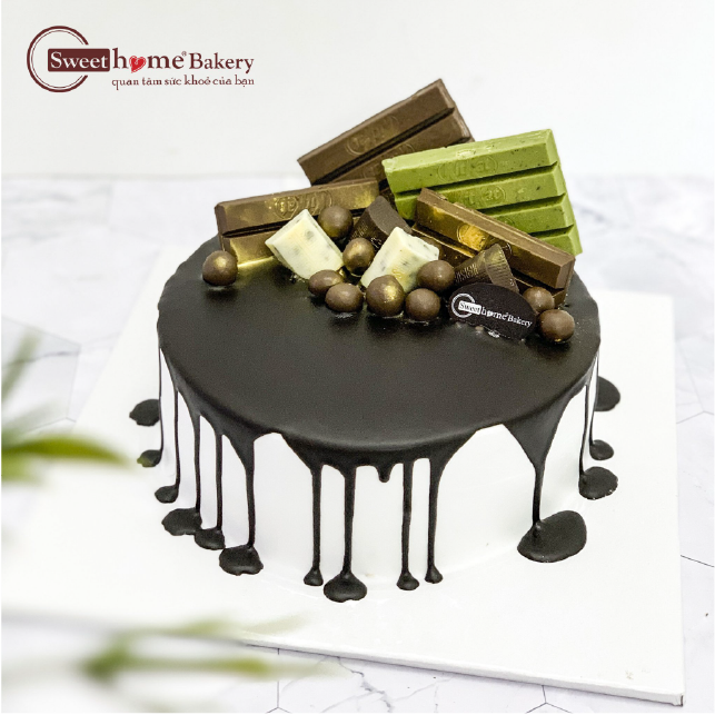 Mô tả sản phẩm: Bánh kem sữa tươi trang trí bánh Kitkat và viên chocolate, cốt bánh bông lan truyền thống. Nhân bánh tuỳ chọn (mứt dâu, mứt việt quất, mứt thơm hoặc cacao)