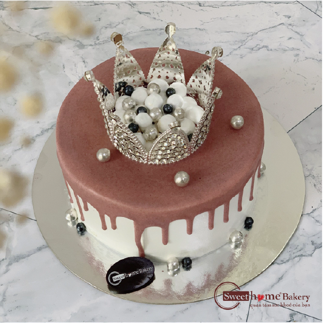 Mô tả sản phẩm: Bánh kem sữa tươi trang trí vương miện, cốt bánh bông lan truyền thống. Nhân bánh tuỳ chọn (mứt dâu, mứt việt quất, mứt thơm hoặc cacao)