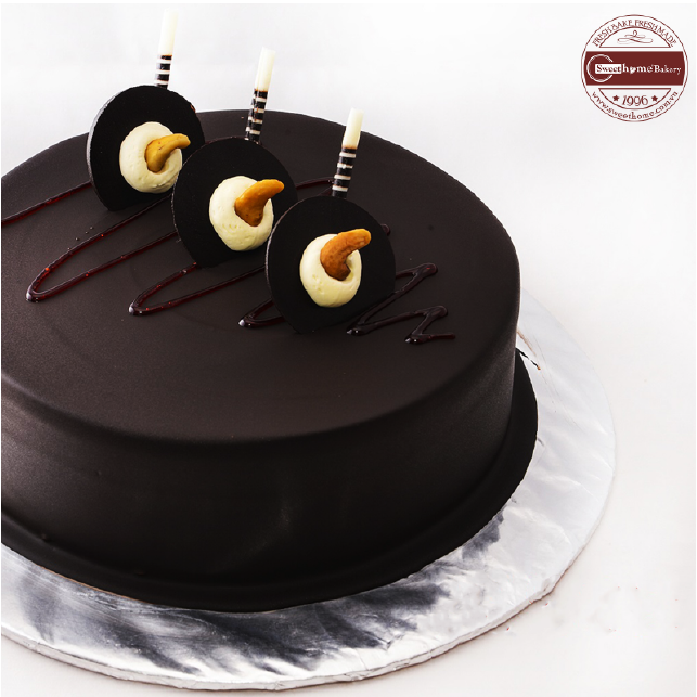 Mô tả sản phẩm: Bánh kem sữa tươi phủ chocolate, trang trí chocolate, cốt bánh bông lan truyền thống. Nhân bánh tuỳ chọn (mứt dâu, mứt thơm, mứt việt quất hoặc cacao).